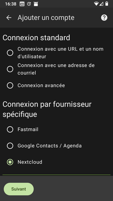 Puis, ouvrir DAVx⁵ et ajouter un compte, choisir Nextcloud.
