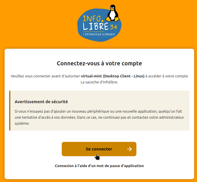 Avant de démarrer Nextcloud Desktop il faut se connecter à son compte via le navigateur par défaut du système, cela évitera bien des soucis par la suite.