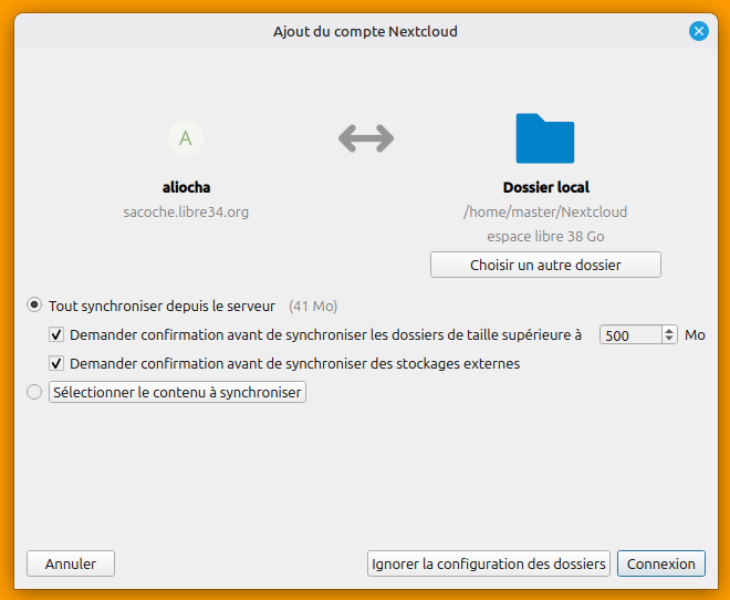 Encore une fois, il est vivement recommandé de se connecter préalablement à son compte Nextcloud avec le navigateur par défaut avant d'aller plus loin.