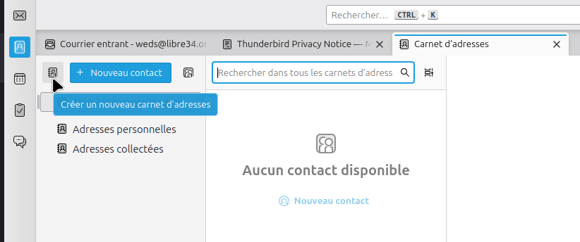 Dans l'onglet carnet d'adresses, cliquer sur l'icône.