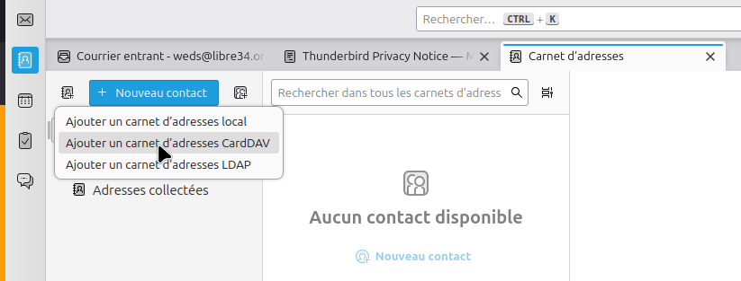 Choisir CardDAV.