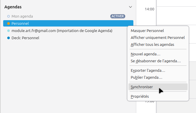 La synchronisation est automatique à périodes régulières, mais si tu veux, tu peux la déclencher manuellement dans le menu d'un agenda.