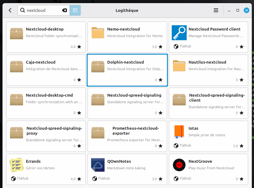 - Et pour KDE : Dophin-nextcloud