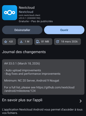 On peut aussi remarquer que pour chaque outil Nextcloud, il existe une appli mobile adaptée.